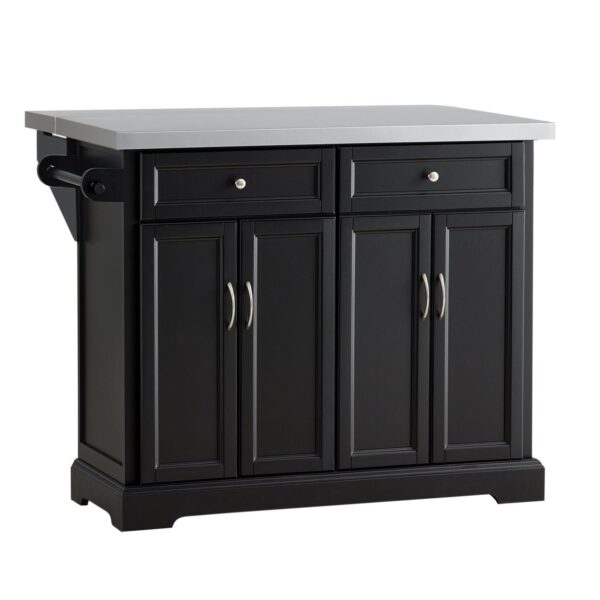 Køkkenø på hjul, køkkenvogn med udtrækkelig bordplade, sort – Køkkenudstyr – Daily-Living – Køkkenø på hjul – køkkenvogn med udtrækkelig bordplade i rustfrit stål, skuffer og skabe med hylder – sort 115 × 46-71 × 92 cm