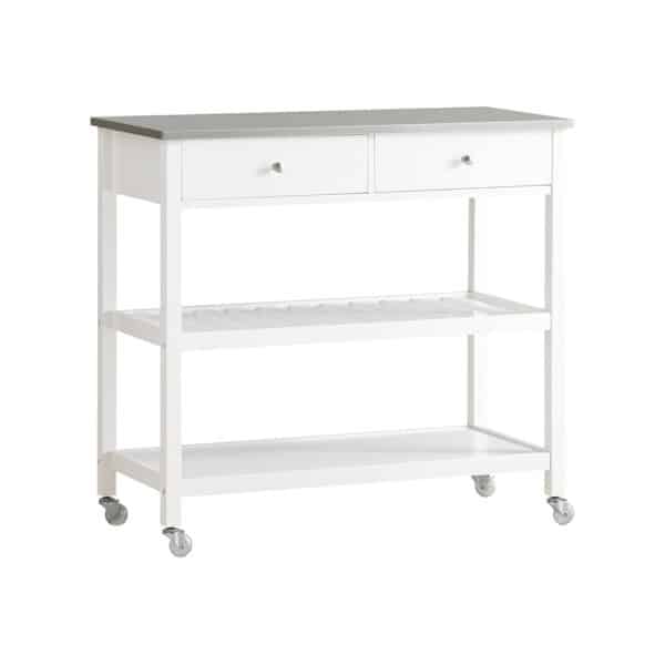 Køkkenvogn med skuffer, køkkenø på hjul, hvid 81 x 45 x 90 – Køkkenudstyr – Daily-Living – Elegant og fleksibel køkkenvogn – køkkenø på hjul med klassisk og tidsløst design med bordplade af rustfri stål – hvid 81 x 45 x 90 cm